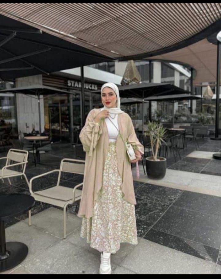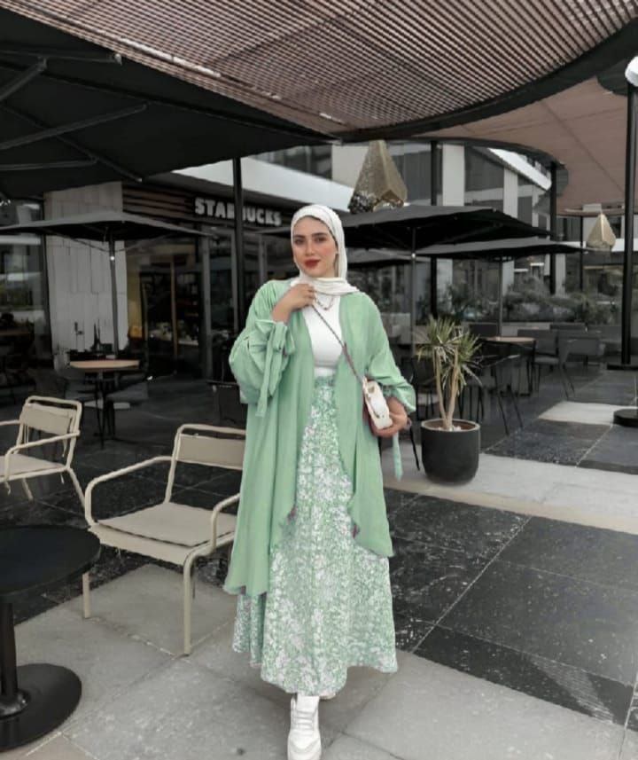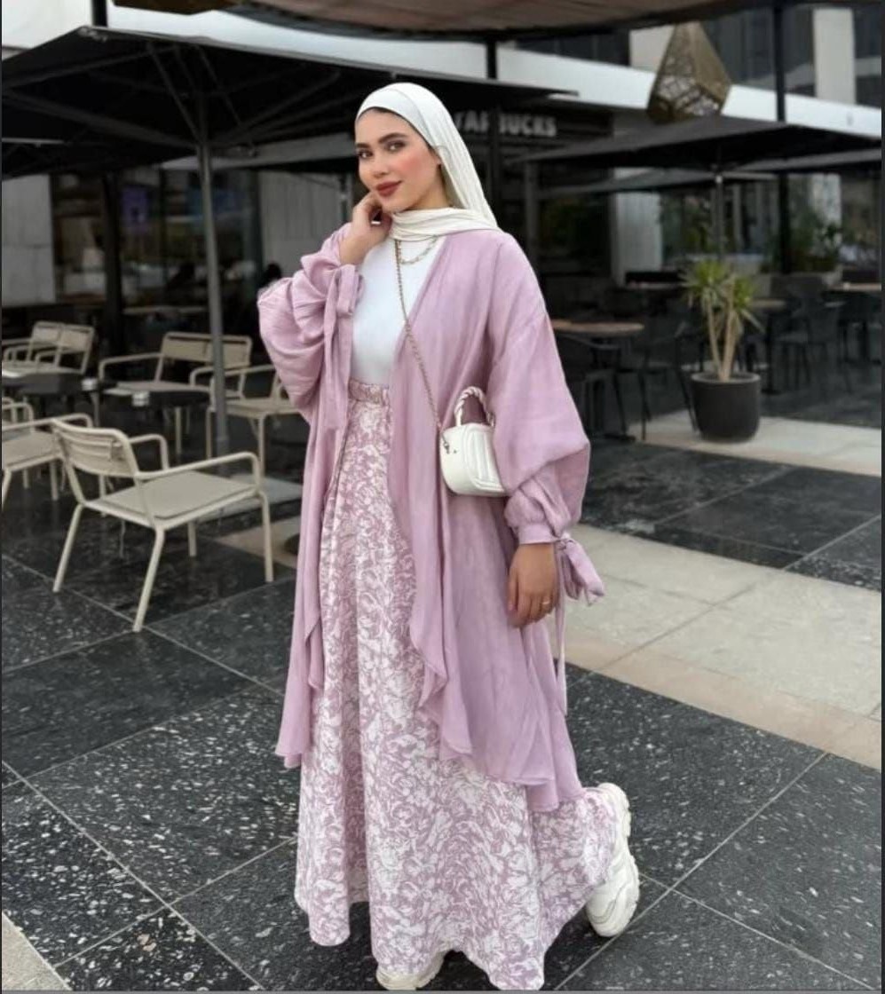 الطقم عبارة عن ثلاث قطع: بولرو ساده بكم رباط، وجيبه مشجر تحفه، واللي هيساعدك تلبسي الكاردي بكذا طريقة لتظهري بأشكال مختلفة. يعني فعلاً اتنين في واحد زي البلسم 😂🔥🌚
