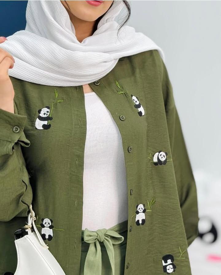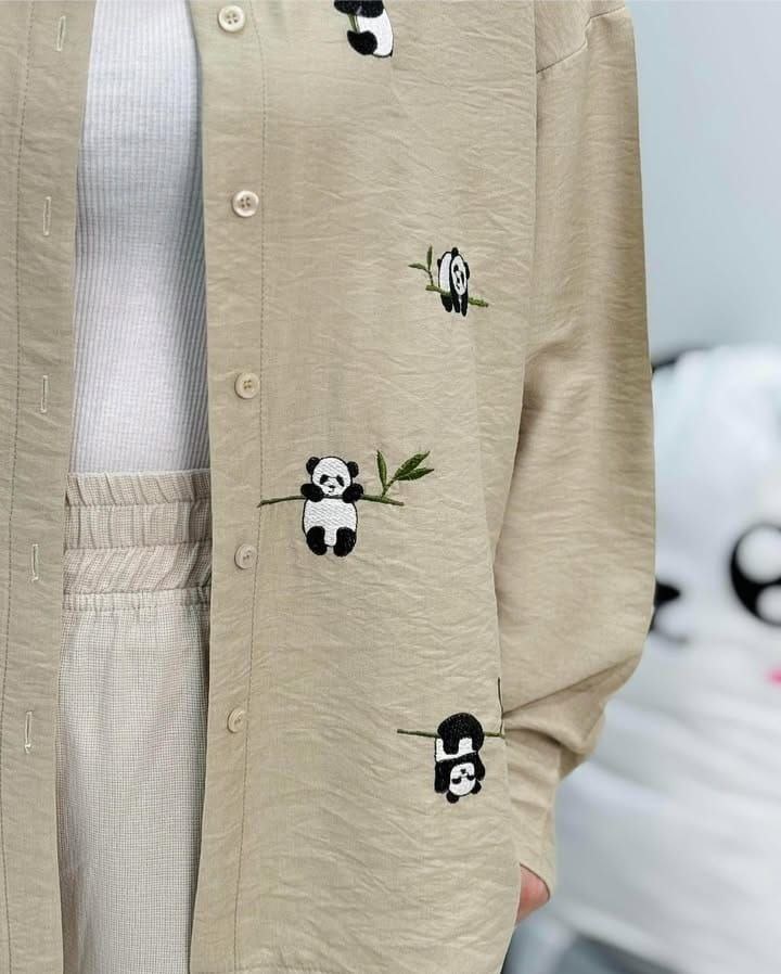 لو بتحبي الحاجات المختلفة واللي فيها روح، الشميز ده معمول ليكي 👌 تطريز يدوي باندا كيوت، متنفذ بدقة في كل تفصيلة – هيخلي أي لوك شكله غالي ✨